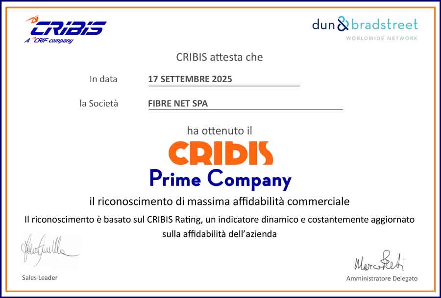Fibre Net riceve l’attestato CRIBIS Prime Company 2025